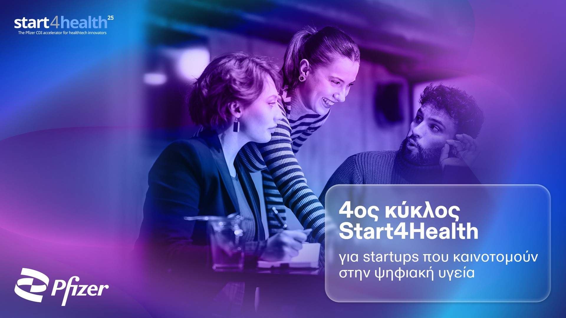 Την έναρξη του 4ου κύκλου του Start4Health, ενός προγράμματος που στόχο έχει την ενδυνάμωση του οικοσυστήματος καινοτομίας στη χώρα μας, αλλά και την ανάδειξη πρωτοποριακών ψηφιακών λύσεων στην Υγεία, ανακοίνωσε το Κέντρο Ψηφιακής Καινοτομίας της Pfizer.
