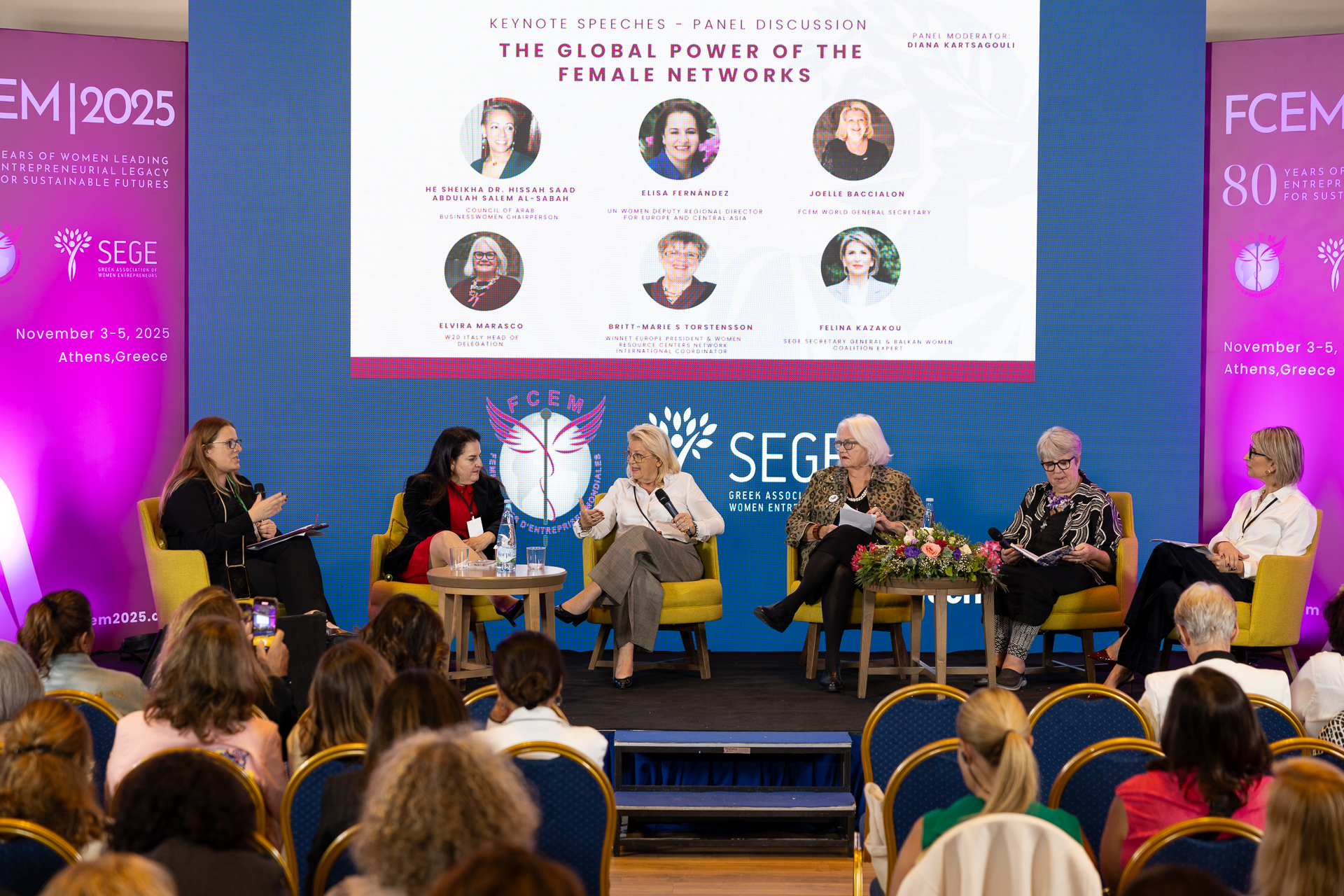 Ο Σύνδεσμος Επιχειρηματιών Γυναικών Ελλάδας (ΣΕΓΕ) έθεσε την Αθήνα στο επίκεντρο της παγκόσμιας γυναικείας επιχειρηματικότητας, εγκαινιάζοντας με εντυπωσιακό τρόπο την πρώτη ημέρα του FCEM World Congress 2025 με περισσότερες από 800 συνέδρους. Η διοργάνωση, που φιλοξενείται στο Wyndham Grand Athens, συγκέντρωσε γυναίκες επιχειρηματίες από 72 χώρες, επιβεβαιώνοντας τον ρόλο της Ελλάδας ως αναδυόμενου διεθνούς κόμβου ηγεσίας, καινοτομίας και εξωστρέφειας.