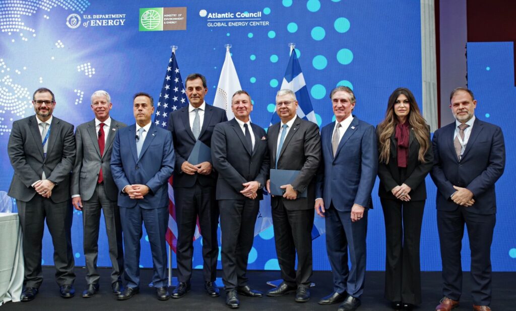 Στιγμιότυπο από την τελετή υπογραφής για τη συμμετοχή της ExxonMobil στην παραχώρηση του «Block 2», που πραγματοποιήθηκε στο Ζάππειο.
