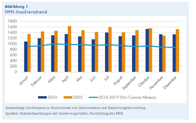 Οι πρόδρομοι δείκτες του IWH, οι οποίοι προηγούνται των εξελίξεων κατά δύο έως τρεις μήνες, παρουσιάζουν συνεχή άνοδο το τελευταίο διάστημα. Βάσει αυτών, το Ινστιτούτο αναμένει ότι ο αριθμός των πτωχεύσεων θα παραμείνει σε πολύ υψηλά επίπεδα και κατά το πρώτο τρίμηνο του 2026.