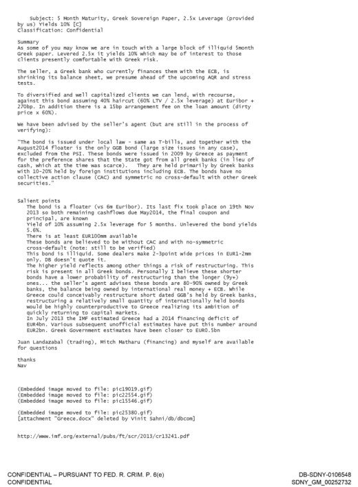 Τον Ιούνιο του 2014 ο Nav Gupta από την Deutsche Bank στέλνει στον Έπσταϊν μια ανάλυση για τα warrants της Alpha Bank, υποστηρίζοντας ότι αποτελούν τον καλύτερο τρόπο για να ποντάρει κανείς στην ελληνική ανάκαμψη. Στην αλληλογραφία εμπλέκεται και ο Richard Kahn, στενός συνεργάτης του Έπσταϊν, ο οποίος ενημερώνεται για τη δημιουργία τοπικού λογαριασμού (passenger account) στην Ελλάδα, απαραίτητου για τη διενέργεια αυτών των συναλλαγών.