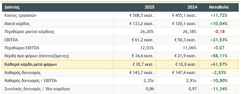 Πιο συγκεκριμένα, η Alumil δημοσίευσε για τη χρήση 2025 τα παρακάτω οικονομικά μεγέθη:
