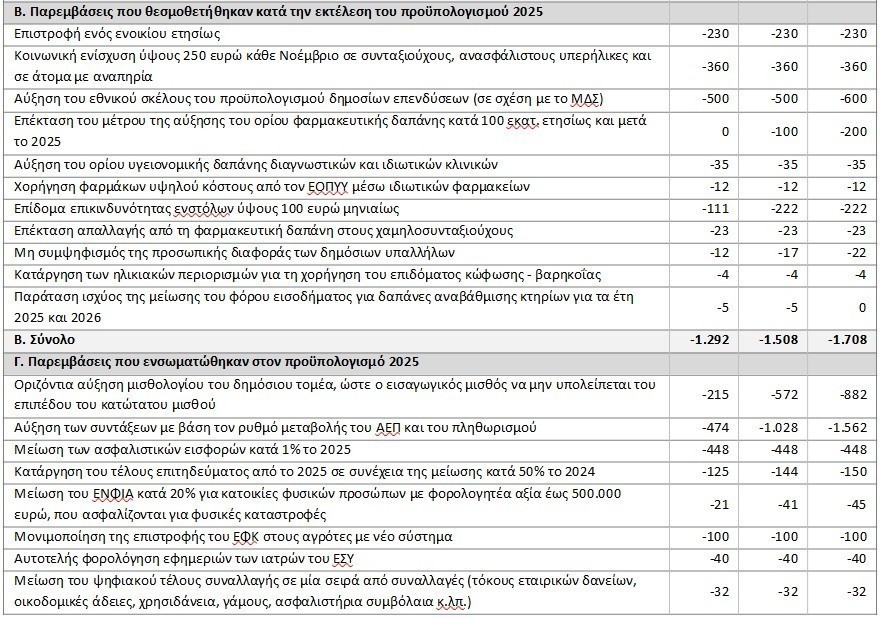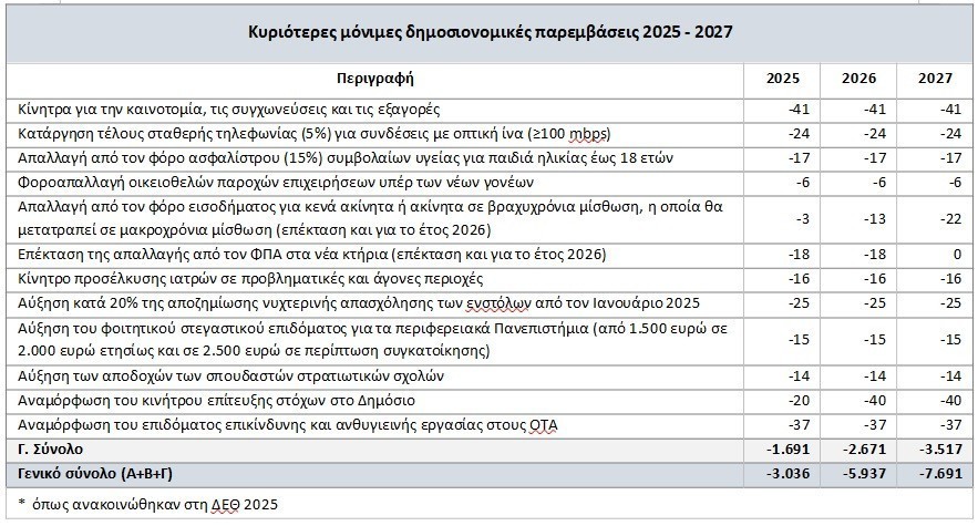 Στη Βουλή κατατέθηκε το προσχέδιο του προϋπολογισμού, στο οποίο περιλαμβάνονται παροχές και φοροελαφρύνσεις ύψους 1,7 δισ. ευρώ για το 2026. Το συνολικό κόστος για την τριετία 2025-2027, φτάνει στα 7,7 δισ. ευρώ.