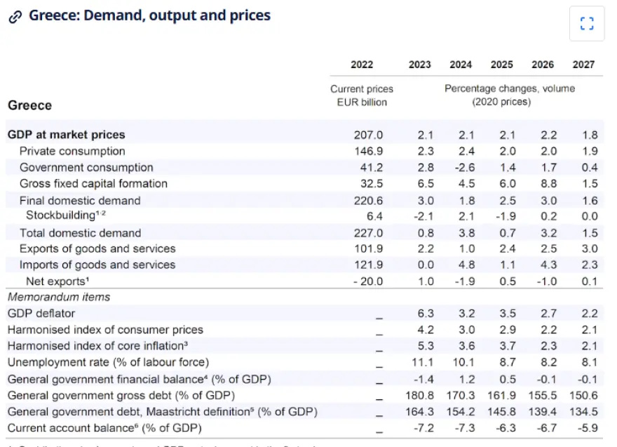 Παρά την επιβράδυνση στις επενδύσεις που αναμένεται μεσοπρόθεσμα, η εσωτερική ζήτηση προβλέπεται να παραμείνει σε ανοδική πορεία. Ο ΟΟΣΑ εκτιμά ότι η κατανάλωση των νοικοκυριών θα ενισχυθεί περαιτέρω, αποτέλεσμα της αύξησης της απασχόλησης και των μισθολογικών αποδοχών. Παράλληλα, οι εξαγωγές αναμένεται να επιστρέψουν σε υψηλότερο ρυθμό, καθώς η διεθνής ζήτηση σταδιακά ανακάμπτει. Ο πληθωρισμός αναμένεται να αποκλιμακωθεί περαιτέρω, αγγίζοντας το 2,1% έως το 2027.