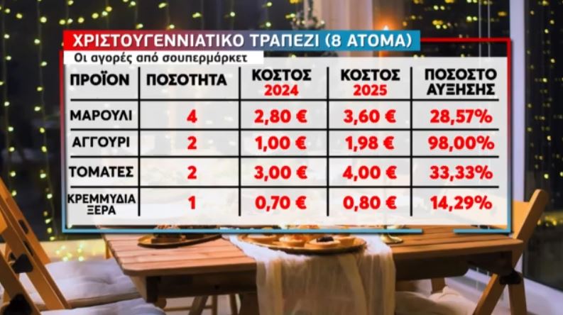 Οι αυξήσεις αυτές επιβαρύνουν σημαντικά τον οικογενειακό προϋπολογισμό ενόψει των Χριστουγέννων.