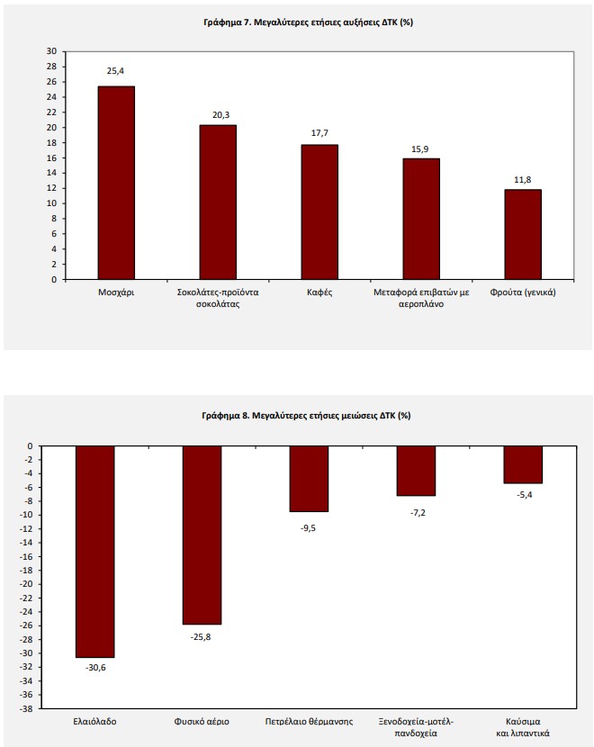 Οι μεγαλύτερες ετήσιες αυξήσεις σημειώθηκαν στις εξής κατηγορίες: