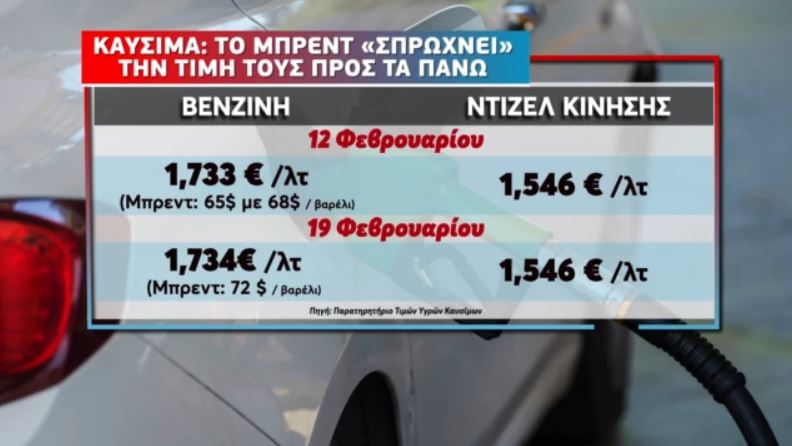 Μέσα σε λίγες εβδομάδες, η αύξηση της τιμής του Brent κατά 6 δολάρια το βαρέλι συνοδεύτηκε από αντίστοιχες ανατιμήσεις στα καύσιμα στην αντλία.