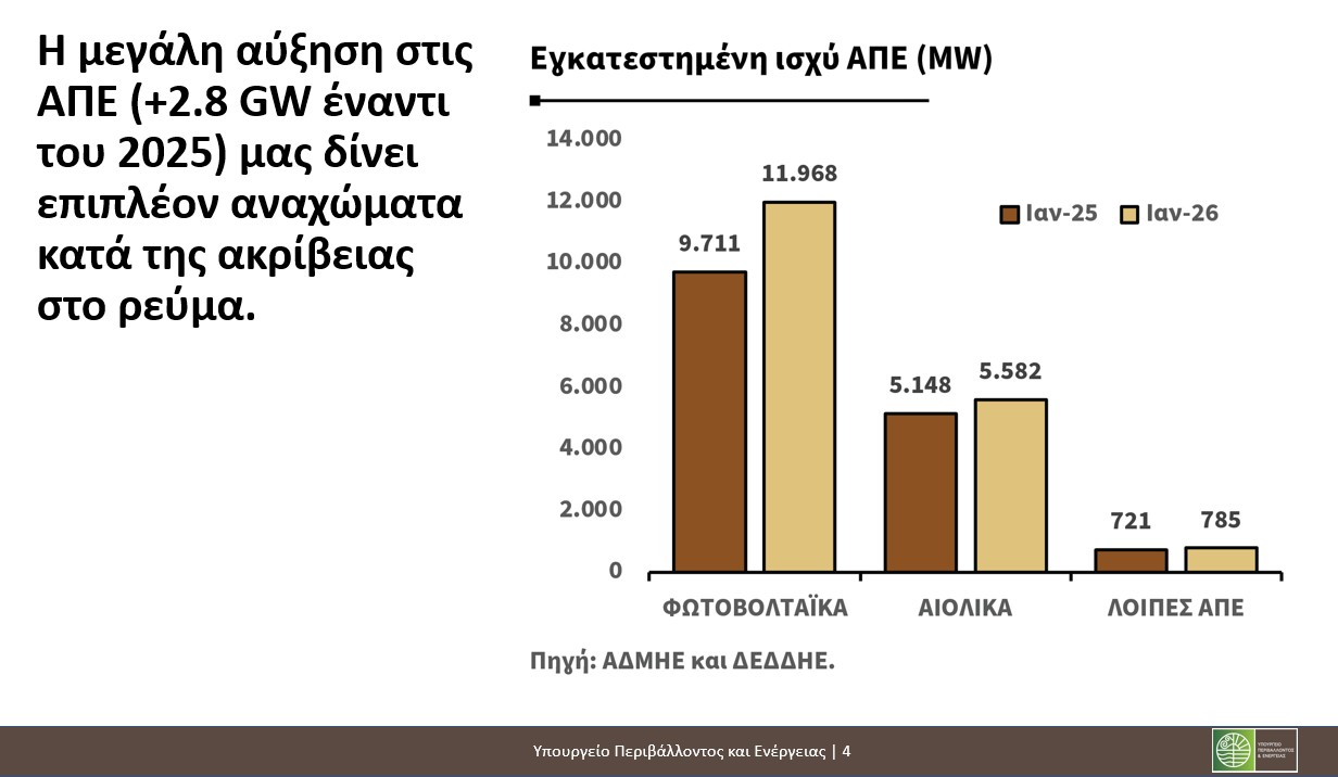 Παράλληλα προχωρούμε με γρήγορους ρυθμούς μέσα στον χρόνο στην εγκατάσταση μπαταριών που θα βοηθήσουν στην αποθήκευση και στη σταθερότητα του συστήματος των ΑΠΕ.