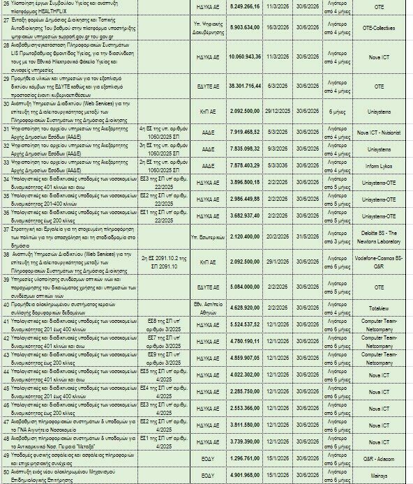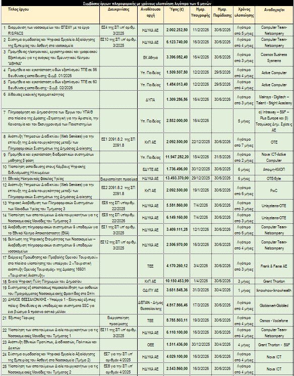 Ωστόσο, έργα όπως είναι η Ψηφιακή Αναβάθμιση των Πληροφοριακών Συστημάτων των Μονάδων Υγείας ή η δημιουργία της Ενιαίας Ψηφιακής Πύλης Πληρωμών του Δημοσίου, θα πρέπει να υλοποιηθούν μέσα σε λιγότερο από 4 μήνες από την υπογραφή της σύμβασης.