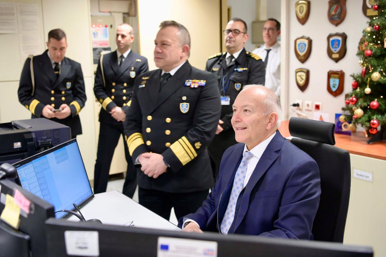 Εν συνεχεία, ο υφυπουργός Ναυτιλίας και Νησιωτικής Πολιτικής, μετέβη στο Εθνικό Κέντρο Συντονισμού Έρευνας Διάσωσης (ΕΚΣΕΔ) όπου είχε την ευκαιρία, εκπροσωπώντας τον υπουργό Ναυτιλίας και Νησιωτικής Πολιτικής, Βασίλη Κικίλια, να επικοινωνήσει με δύο εμπορικά πλοία που βρίσκονται εν πλω (το «Maran Lynx» στον Ινδικό Ωκεανό και το «Ανδρομέδα» στην Μεσόγειο), και με δύο σκάφη του ΛΣ – ΕΛ.ΑΚΤ σε αποστολή.