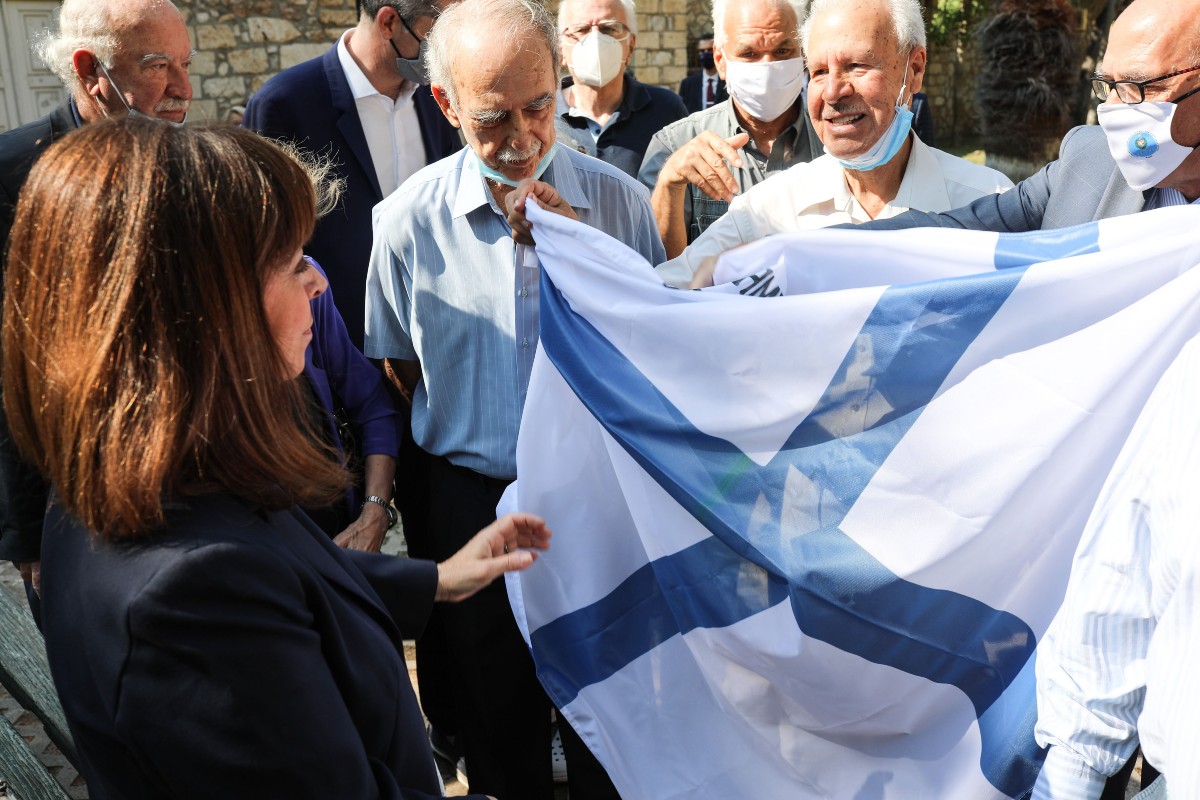 H Πρόεδρος της Δημοκρατίας, Κατερίνα Σακελλαροπούλου συνομιλεί με εκπροσώπους του Συνδέσμου Φυλακισθέντων Εξορισθέντων 1967-74. ΑΠΕ-ΜΠΕ/ΠΡΟΕΔΡΙΑ ΤΗΣ ΔΗΜΟΚΡΑΤΙΑΣ/ΜΑΝΩΛΟΠΟΥΛΟΣ ΘΕΟΔΩΡΟΣ