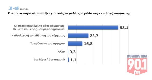 Τα κριτήρια για την επιλογή των κομμάτων είναι βασική παράμετρος της εκλογικής συμπεριφοράς και η συνθετική ανάλυση περιεχομένου των ερωτήσεων ενισχύει τη θεωρία της ορθολογικής ψήφου, βάσει της οποίας η πλειοψηφία των εκλογέων κάνει τις επιλογές της εξετάζοντας τις θέσεις των κομμάτων και το κατά πόσο αυτές συμπίπτουν και συμβαδίζουν με τη δική τους ατομική ιεράρχηση.