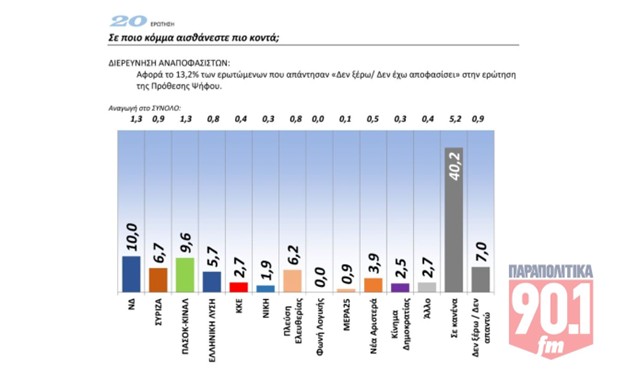 40,2% δεν αισθάνεται κοντά του κανένα κόμμα