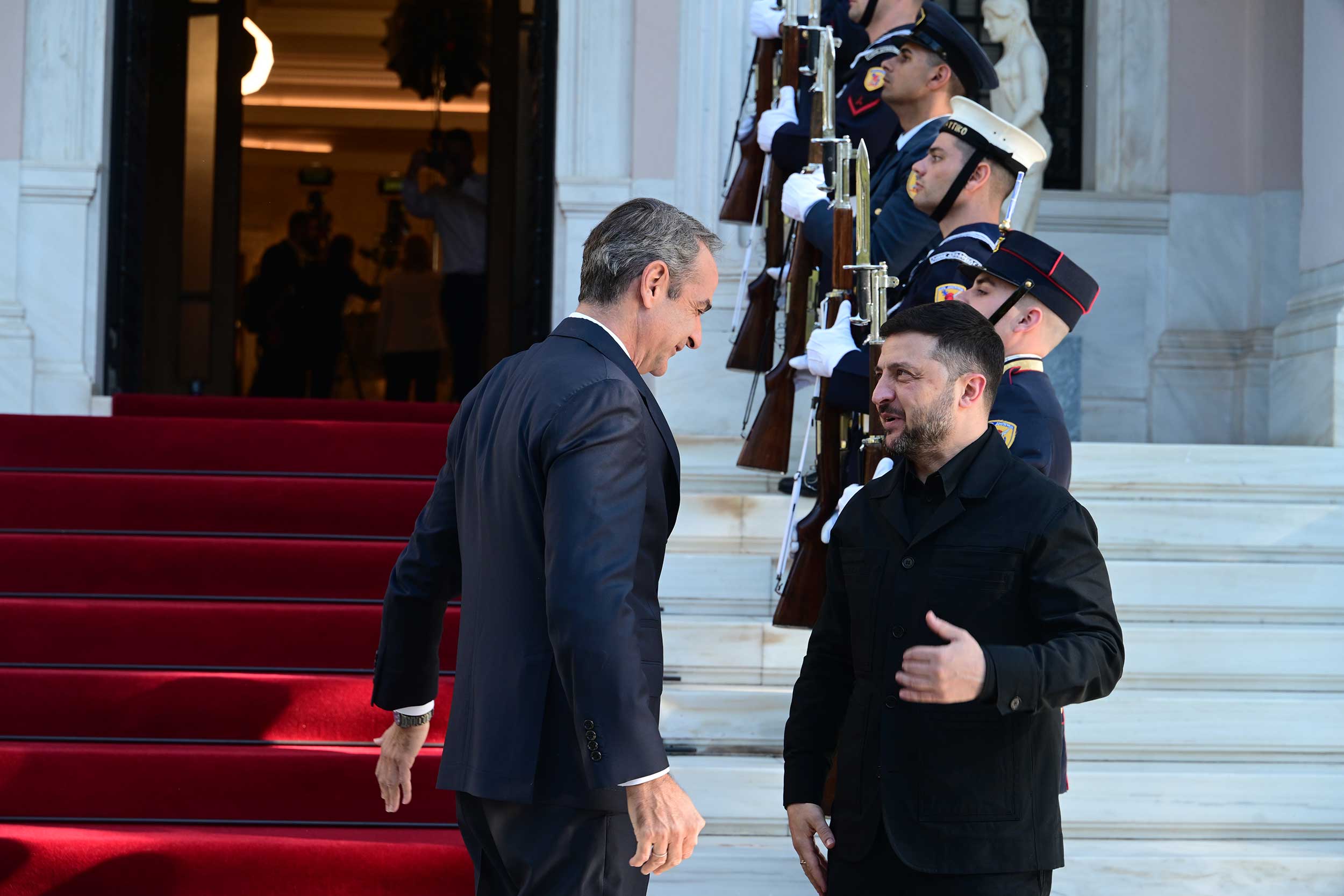 Κυριάκος Μητσοτάκης και Βολοντίμιρ Ζελένσκι έχουν αυτήν την ώρα συνάντηση στο Μέγαρο Μαξίμου. Ο Ζελένσκι βρίσκεται στην Αθήνα, με τα ενεργειακά να βρίσκονται στην κορυφή της ατζέντας. Ο πρόεδρος της Ουκρανίας ξεκίνησε τον νέο κύκλο επαφών του στην Ευρώπη, αρχίζοντας την περιοδεία του από την Αθήνα, για να ακολουθήσουν στη συνέχεια οι επισκέψεις σε Γαλλία και Ισπανία.