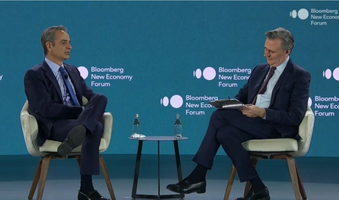Ο Κυριάκος Μητσοτάκης συνομίλησε με τον Βρετανό αρχισυντάκτη του Bloomberg News, Τζον Μικλεθγουέιτ, για το μέλλον της Ευρώπης, στο πλαίσιο των εργασιών του Bloomberg New Economy Forum στη Σιγκαπούρη. Ο Έλληνας πρωθυπουργός τόνισε πως «η Ελλάδα έχει κάνει αξιοσημείωτη επιστροφή, παράγει πρωτογενή πλεονάσματα, το χρέος βελτιώνεται, ο ρυθμός ανάπτυξης είναι υψηλότερος από τον μέσο ευρωπαϊκό όρο και έχουμε αποδείξει ότι η κρίση ανήκει στο παρελθόν. Έχουμε καταδείξει στην Ελλάδα ότι μπορούμε να έχουμε αξιόπιστες κυβερνήσεις».