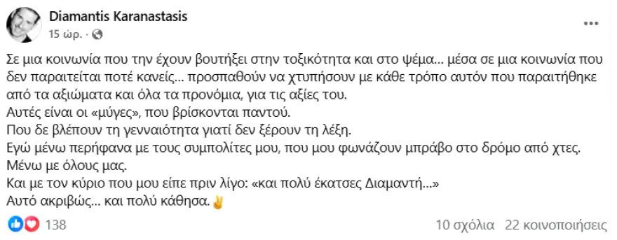 Η ανάρτηση του Διαμαντή Καραναστάση