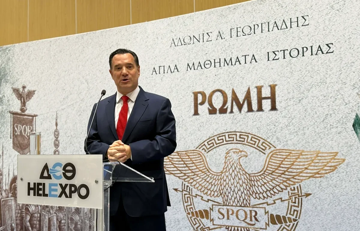 Ο Άδωνις Γεωργιάδης παρουσίασε στο Βελλίδειο Συνεδριακό Κέντρο στη Θεσσαλονίκη σήμερα το απόγευμα το βιβλίο του «Ρώμη: Από την Άνοδο στην Πτώση» του υπουργού Υγείας.
