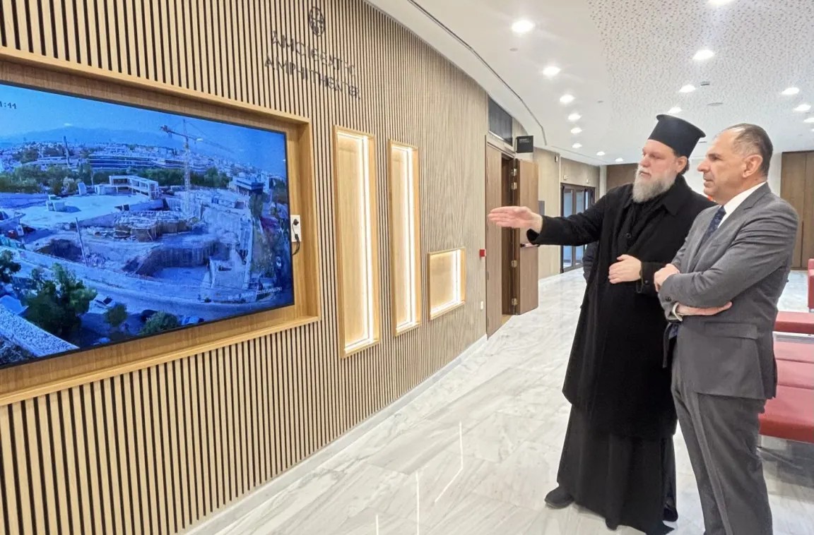 Κατά τη διάρκεια της επίσκεψης, ο Μητροπολίτης κ. Γαβριήλ ξενάγησε τον κ. Υπουργό στους χώρους του Κέντρου, παρουσιάζοντάς του το όραμα και την φυσιογνωμία του έργου, καθώς και την αρχιτεκτονική του σύλληψη, τη λειτουργική του διάρθρωση και τον συνολικό του σχεδιασμό.
