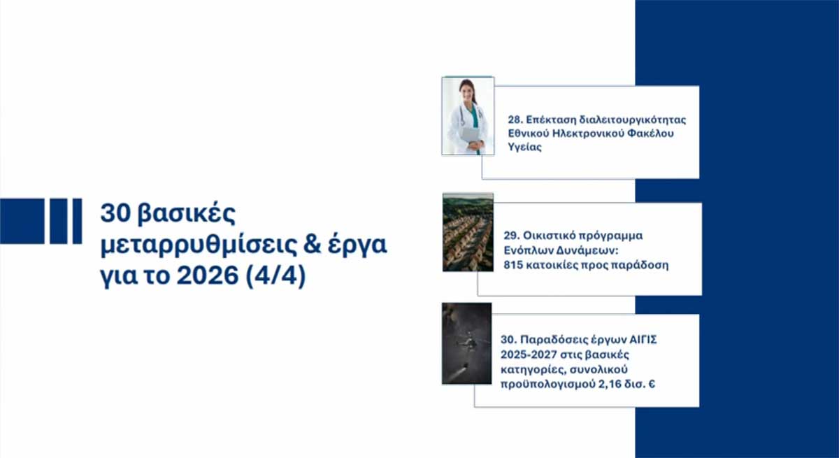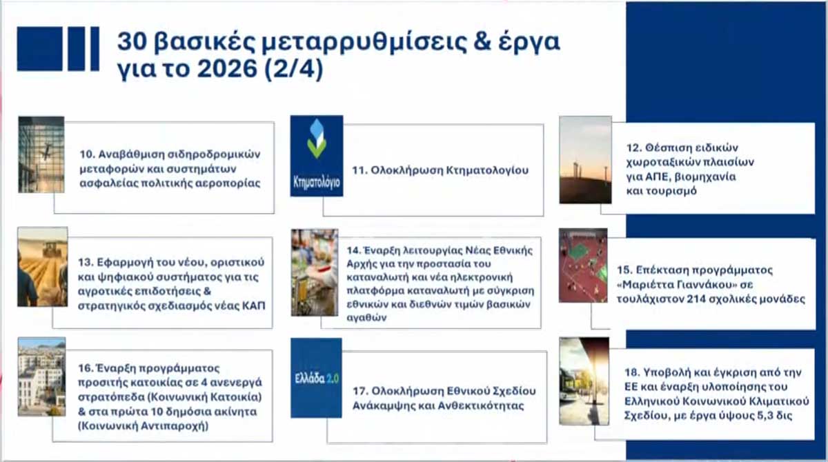 Οι 30 βασικές μεταρρυθμίσεις και έργα για το 2026