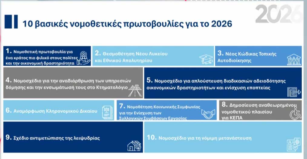 Οι 10 βασικές νομοθετικές πρωτοβουλίες το 2026