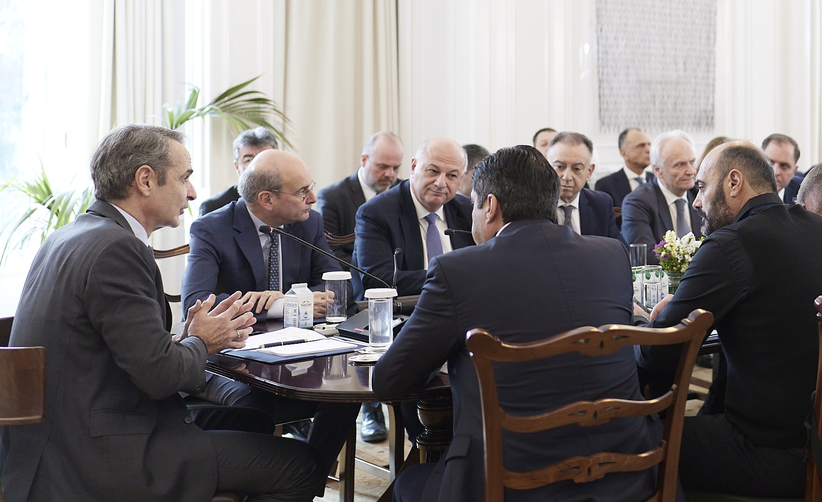 Ολοκληρώθηκε υπό τον πρωθυπουργό Κυριάκο Μητσοτάκη, η σύσκεψη στο Μέγαρο Μαξίμου με εκπροσώπους των κτηνοτρόφων, με επίκεντρο τη διαχείριση της ευλογιάς των αιγοπροβάτων και τα επόμενα βήματα στήριξης του κλάδου.