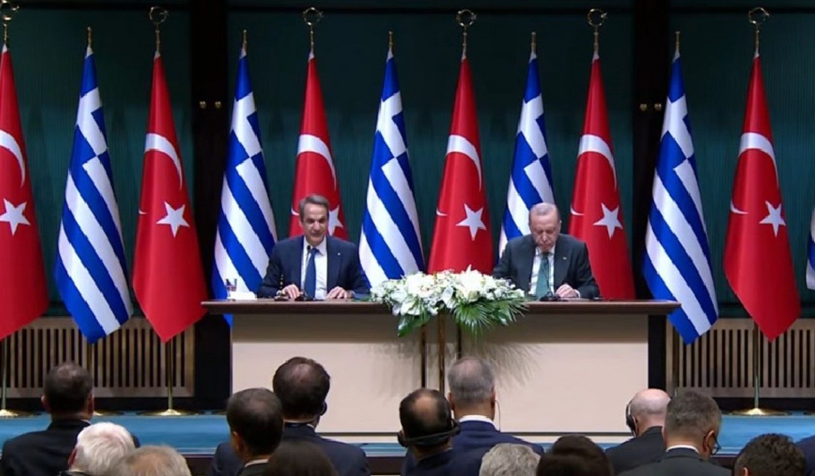 Με τα ελληνοτουρκικά στο επίκεντρο και τη δυνατότητα περαιτέρω σύσφιξης των διμερών σχέσεων να τίθεται επί τάπητος κατά τη διάρκεια της συνάντησης στην Άγκυρα, Κυριάκος Μητσοτάκης και Ρετζέπ Ταγίπ Ερντογάν έκαναν κοινές δηλώσεις, αφού ολοκληρώθηκαν οι διμερείς συμφωνίες που υπογράφτηκαν μεταξύ των δύο κρατών. Η συνάντηση Μητσοτάκη και Ερντογάν στο «Λευκό Παλάτι» στην Άγκυρα κράτησε 1,5 ώρα περίπου.