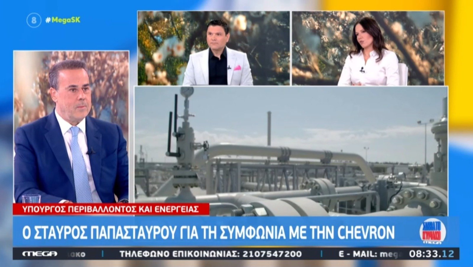 Στις εξελίξεις στη Μέση Ανατολή, την ενεργειακή επάρκεια της χώρας μας, στις συμφωνίες για αξιοποίηση του ορυκτού πλούτου της Ελλάδας, αλλά και στις δηλώσεις του Αλέξη Τσίπρα, αναφέρθηκε ο υπουργός Περιβάλλοντος και Ενέργειας, κ. Σταύρος Παπασταύρου, μιλώντας στο Mega και στην εκπομπή «Mega Σαββατοκύριακο», με τους δημοσιογράφους Στέλλα Γκαντώνα και Ντίνο Σιωμόπουλο.