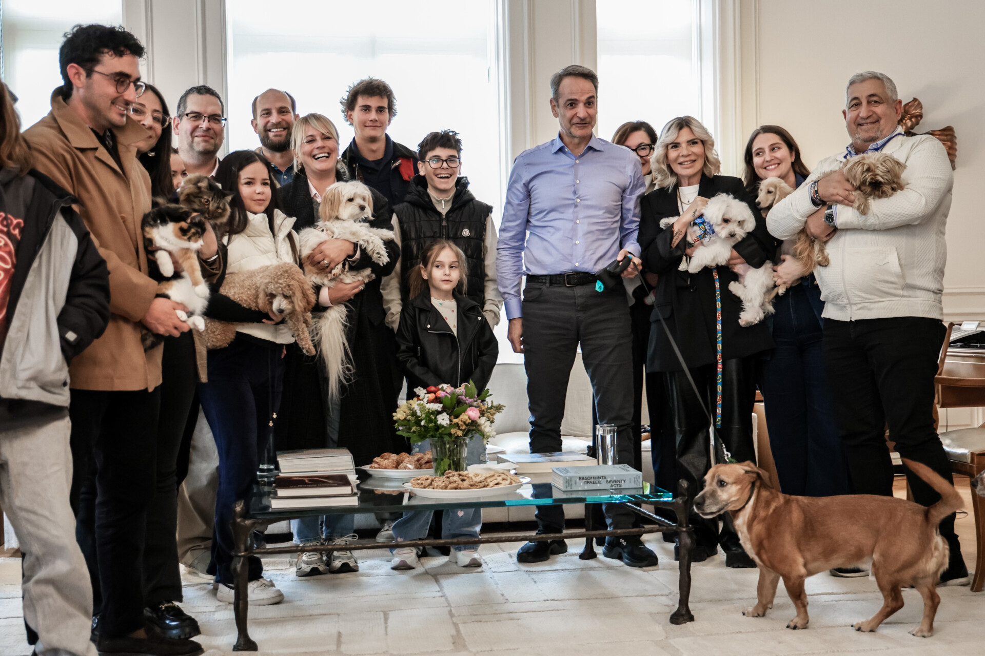 Έλληνες πολίτες που επαναπατρίστηκαν από τη Μέση Ανατολή μαζί με τα ζώα συντροφιάς τους, μέσω της ειδικής πτήσης που οργάνωσε το υπουργείο Εξωτερικών σε συνεργασία με την Aegean, υποδέχτηκε σήμερα ο πρωθυπουργός Κυριάκος Μητσοτάκης στο Μέγαρο Μαξίμου.