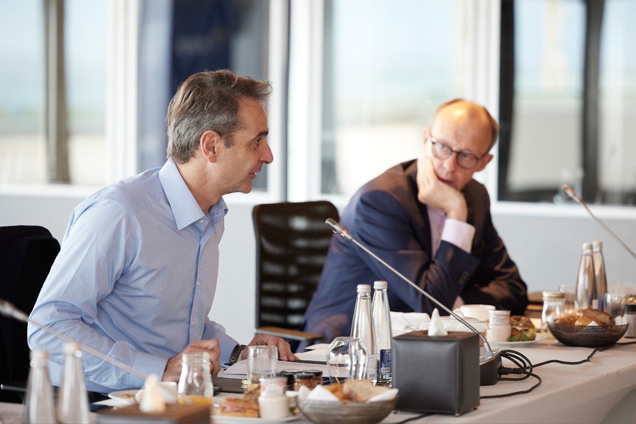 Ο Κυριάκος Μητσοτάκης στο πρόγευμα εργασίας του ΕΛΚ (ΔΗΜΗΤΡΗΣ ΠΑΠΑΜΗΤΣΟΣ/ΓΡΑΦΕΙΟ ΤΥΠΟΥ ΠΡΩΘΥΠΟΥΡΓΟΥ/EUROKINISSI)