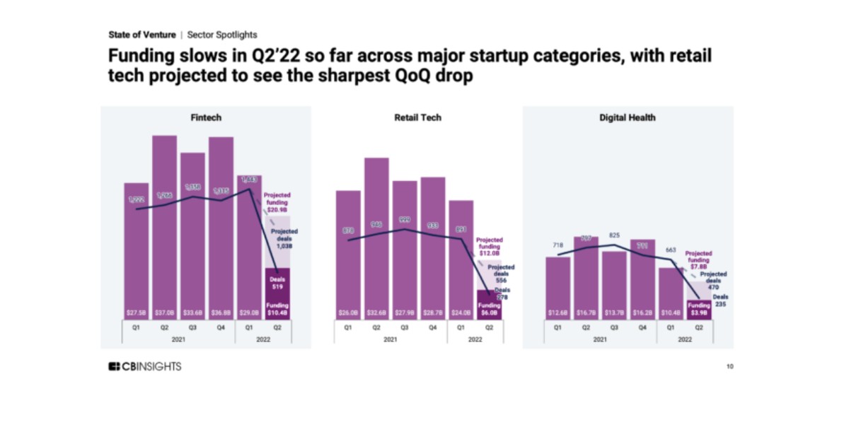 Περισσότερο αναμένεται να πληγεί ο κλάδος του λεγόμενου retail tech με πτώση χρηματοδότησης κατά 50%, του fintech κατά 28% και της ψηφιακής υγείας κατά 25%.