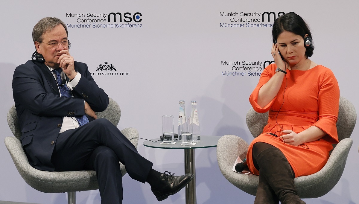 O Άρμιν Λάσετ και η Αναλένα Μπέρμποκ σε πάνελ στα πλαίσια της 56ης Διάσκεψης Ασφάλειας του Μονάχου το 2020/ΑΠΕ-ΜΠΕ