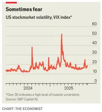 Όλοι έχουν δίκιο για ένα πράγμα: οι αποτιμήσεις πολλών περιουσιακών στοιχείων είναι υπερβολικά υψηλές. Για να αγοράσουν το καλάθι των μετοχών του αμερικανικού δείκτη μετοχών S&P 500, οι επενδυτές πληρώνουν σήμερα 41 φορές τα υποκείμενα, κυκλικά προσαρμοσμένα κέρδη τους – ένας πολλαπλασιαστής που ξεπεράστηκε μόνο κατά τη διάρκεια της φούσκας των dotcom, και τότε όχι κατά πολύ. Τα εταιρικά ομόλογα επενδυτικής βαθμίδας αποδίδουν κατά μέσο όρο μόνο 0,8 ποσοστιαίες μονάδες περισσότερο από τα αντίστοιχα κρατικά ομόλογα. Η τελευταία φορά που αυτό το πιστωτικό περιθώριο ήταν τόσο χαμηλό ήταν επίσης κατά τη διάρκεια της φούσκας των dotcom, το 1998. Ακόμα και ο χρυσός, που συνήθως αποτελεί καταφύγιο, φαίνεται ασυνήθιστα ευάλωτος στις ιδιοτροπίες των traders. Αφού εκτοξεύθηκε σε τιμή ρεκόρ στις 20 Οκτωβρίου, στη συνέχεια υποχώρησε κατά 7% μέσα σε δύο μόλις ημέρες, και τώρα βρίσκεται 8% κάτω από το ανώτατο επίπεδό του.