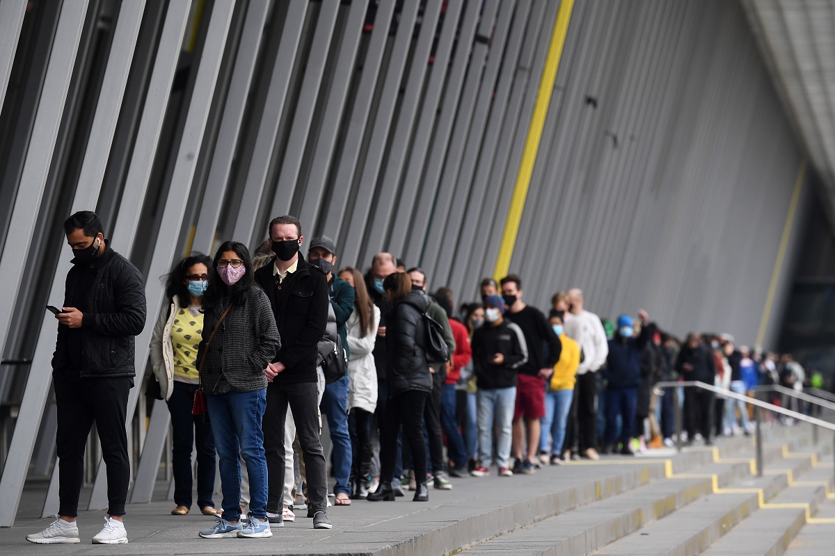 Αυστραλοί περιμένουν να εμβολιαστούν κατά του κορονοϊού στη Μελβούρνη, στα τέλη Αυγούστου 2021 @ EPA/JAMES ROSS AUSTRALIA AND NEW ZEALAND OUT