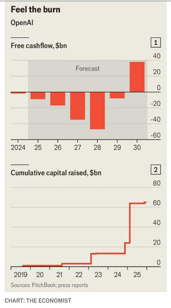 Το πρόβλημα είναι ότι η ζήτηση της OpenAI για υπολογιστική ισχύ – μακράν το μεγαλύτερο κόστος της – παρέμεινε στενά συνδεδεμένη με τα έσοδα. Οι υπολογιστικές ανάγκες της εταιρείας αυξήθηκαν από 200 μεγαβάτ το 2023 σε 1,9 γιγαβάτ (GW) το 2025. Έχει υπογράψει επιστολές προθέσεων για την προσθήκη επιπλέον 30 GW ισχύος τα επόμενα χρόνια με κόστος περίπου 1,4 τρισ. δολάρια. Προς το παρόν, οι επενδυτές είναι ενθουσιασμένοι από το εκθαμβωτικό κατόρθωμα του κ. Altman. Τελικά, όμως, θα πρέπει να αποδείξει ότι μπορεί να βγάλει και κέρδος.