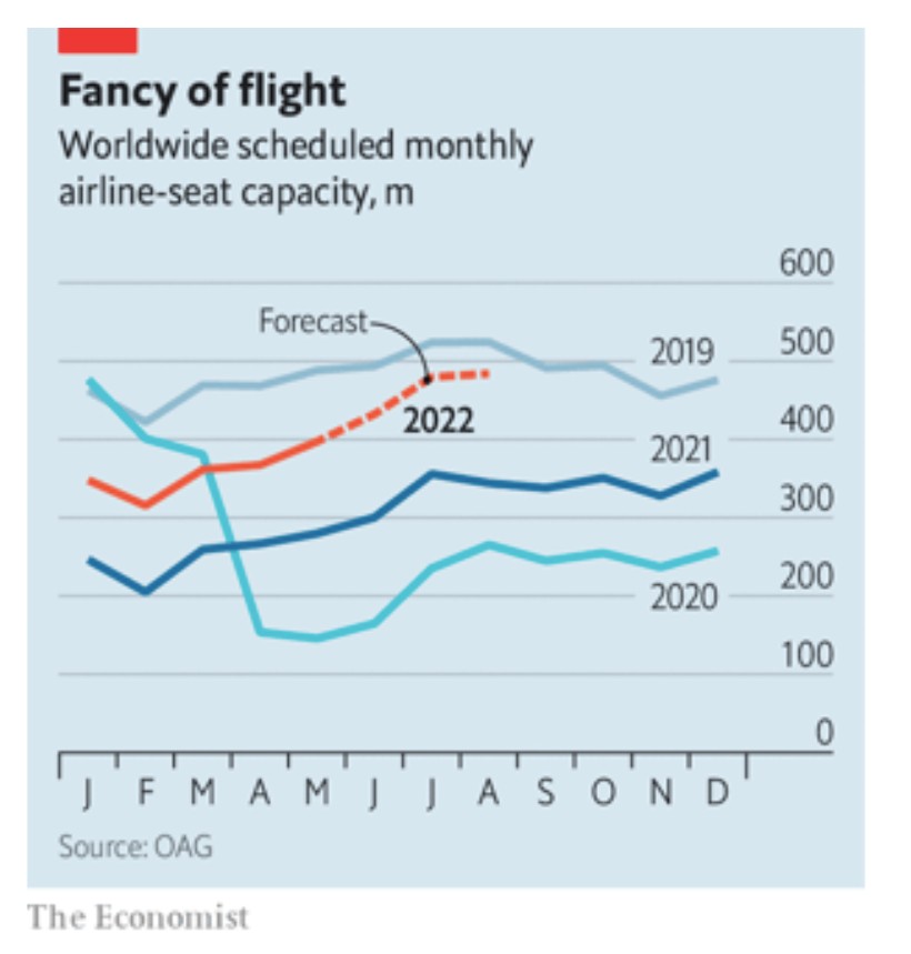 Η Ιαπωνία, η οποία είχε παραμείνει ουσιαστικά κλειστή για τους τουρίστες επί δύο χρόνια, δήλωσε στις 26 Μαΐου ότι θα αρχίσει να χαλαρώνει τους περιορισμούς για τους επισκέπτες. Με εξαίρεση την Κίνα, όπου τα αυστηρά πρόσφατα lockdowns ανέτρεψαν την ισχυρή ανάκαμψη των εγχώριων πτήσεων, τα αεροπλάνα βρίσκονται και πάλι στον αέρα κοντά στα προ της πανδημίας επίπεδα.