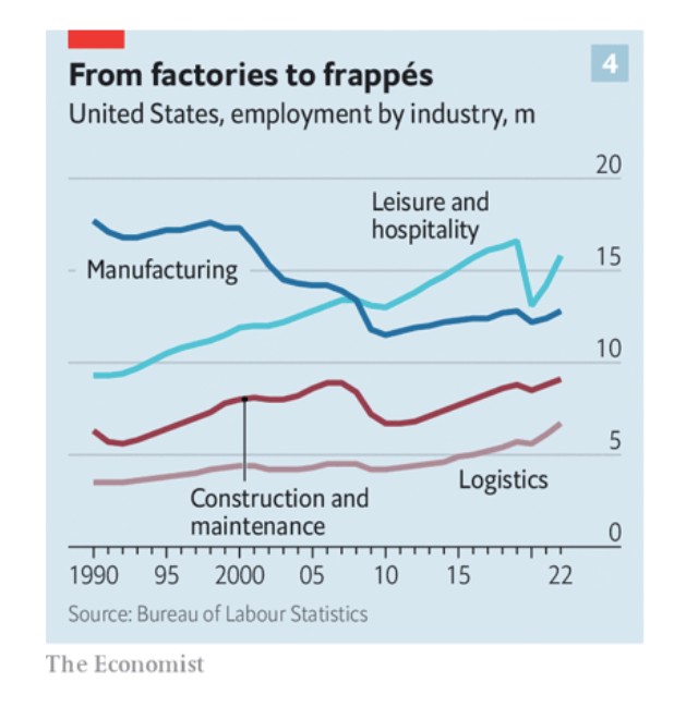Παρ’ όλο που οι κύριοι Frey και Osborne έχουν ακόμη μερικά χρόνια μπροστά τους μέχρι ν’ αποδειχθεί αν έχουν δίκιο, και μπορούμε προς το παρόν να αγνοούμε τον κ. Musk με ασφάλεια, οι προηγούμενοι φόβοι για την τεχνολογία που εξαφανίζει θέσεις εργασίας δεν υλοποιήθηκαν ποτέ. Αντιθέτως, οι αγορές εργασίας σε όλο τον εύπορο κόσμο υπήρξαν ανέκαθεν «σφιχτές» -και γίνονται ακόμα πιο «σφιχτές» σε δομικό επίπεδο καθώς οι κοινωνίες γηράσκουν. Αυτήν τη στιγμή υπάρχουν δύο κενές θέσεις εργασίας για κάθε άνεργο Αμερικανό, το υψηλότερο ποσοστό που έχει καταγραφεί ποτέ. Στους τομείς της μεταποίησης και της φιλοξενίας στην Αμερική σημειώνονται ελλείψεις εργατικού δυναμικού κατά 500.000 και 800.000 αντίστοιχα (όπως προκύπτει από τη διαφορά που μετριέται μεταξύ των κενών θέσεων εργασίας και των ανέργων των οποίων η τελευταία θέση εργασίας ήταν στον εν λόγω τομέα).