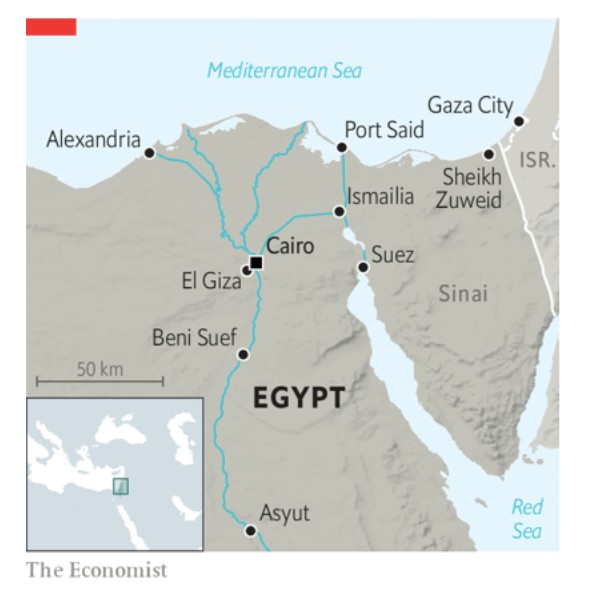Η επίσκεψή του την 1η Απριλίου στη Χερσόνησο του Σινά, ένα απέραντο σεληνιακό τοπίο στο οποίο ζει λιγότερο από το 1% του πληθυσμού της Αιγύπτου, ήταν επίσης μια δήλωση νίκης. Οι ιθαγενείς Βεδουίνοι της περιοχής είχαν περιθωριοποιηθεί για δεκαετίες, αποκλείονταν από αξιοπρεπείς θέσεις εργασίας και εκδιώχθηκαν από τα εδάφη τους. Ορισμένοι πήραν τα όπλα μετά την ανατροπή του επί μακρόν δικτάτορα Hosni Mubarak, το 2011. Το 2014 συνδέθηκαν με τους τζιχαντιστές του Ισλαμικού Κράτους. Τον επόμενο χρόνο κατέλαβαν για λίγο την πόλη Sheikh Zuweid, στην ακτή (βλ. χάρτη).