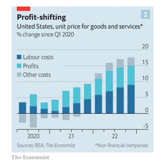 Δεν είναι μόνο το ευρύ κοινό που κατηγορεί τους πλούσιους και τους ισχυρούς. «Ο πρόσφατος πληθωρισμός άγεται από μια ασυνήθιστη επέκταση των περιθωρίων κέρδους», υποστήριξε ο Paul Donovan της τράπεζας UBS. Μελέτη της αμερικανικής Στατιστικής Υπηρεσίας Αγοράς Εργασίας (BLS) δείχνει ότι το «περιθώριο κέρδους των εμπόρων» έχει αυξήσει την τιμή των νέων οχημάτων. Οι κεντρικοί τραπεζίτες μπαίνουν κι αυτοί στο παιχνίδι. Τον περασμένο μήνα ο Fabio Panetta της Ευρωπαϊκής Κεντρικής Τράπεζας δήλωσε ότι «θα μπορούσε να υπάρξει αύξηση του πληθωρισμού λόγω της αύξησης των κερδών». Πέρυσι η Lael Brainard, πρώην αντιπρόεδρος της Ομοσπονδιακής Τράπεζας των ΗΠΑ και νυν αξιωματούχος του Λευκού Οίκου, δήλωσε ότι «οι μειώσεις των προσαυξήσεων θα μπορούσαν να συμβάλουν σημαντικά στη μείωση των πιέσεων στις τιμές».