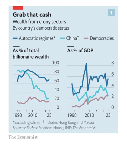 Εν τω μεταξύ, οι Κινέζοι δισεκατομμυριούχοι συνεχίζουν να διαχειρίζονται τις ιδιοτροπίες της κυβέρνησής τους. Από τότε που ο Xi Jinping ξεκίνησε την πάταξη του ιδιωτικού κεφαλαίου, ο πελατειακός πλούτος μειώθηκε απότομα, από το ανώτατο επίπεδο του 4,4% του ΑΕΠ το 2018 στο 2,5% τώρα. Οι μεγιστάνες όλων των ειδών λειτουργούν μόνο με τη συγκατάθεση του κράτους. Το 1998 υπήρχαν μόλις οκτώ δισεκατομμυριούχοι στη χώρα (συμπεριλαμβανομένων του Χονγκ Κονγκ και του Μακάο), με συνολική αξία 50 δισ. δολάρια. Τώρα οι 562 δισεκατομμυριούχοι της χώρας διαθέτουν 2 τρισ. δολάρια. Σύμφωνα με τη δική μας μέτρηση, οι πελατειακοί καπιταλιστές αντιπροσωπεύουν περίπου το ένα τέταρτο αυτού του συνόλου. Ένα πρόσφατο έγγραφο εργασίας που δημοσιεύθηκε από το Stone Centre on Socio-Economic Inequality, τμήμα του City University of New York, διαπιστώνει ότι το 91% των διεφθαρμένων αξιωματούχων βρισκόταν στο κορυφαίο 1% της κατανομής εισοδήματος λόγω των παράνομων εισοδημάτων τους. Χωρίς αυτά τα χρήματα, μόλις το 6% θα βρισκόταν σε αυτό το επίπεδο.