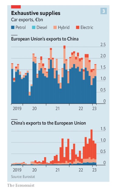 Η Ευρώπη, σε οικονομικό επίπεδο, είναι περισσότερο εκτεθειμένη στην Κίνα απ’ ό,τι η Αμερική. Σύμφωνα με τη Morgan Stanley, περίπου το 8% των εσόδων των εισηγμένων στο χρηματιστήριο ευρωπαϊκών επιχειρήσεων προέρχονται από την Κίνα, έναντι 4% για τις αμερικανικές. Η Ευρώπη και η Αμερική εξάγουν παρόμοιο ποσοστό αγαθών στην Κίνα (7%-9%), αλλά επειδή η Ευρώπη είναι μια οικονομία έντασης εμπορίου, είναι πιο ευαίσθητη. Οι πολυεθνικές επενδύσεις στην Κίνα αξίζουν το 2% του ΑΕΠ της Ευρώπης, έναντι 1% για την Αμερική.