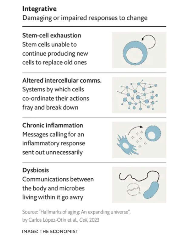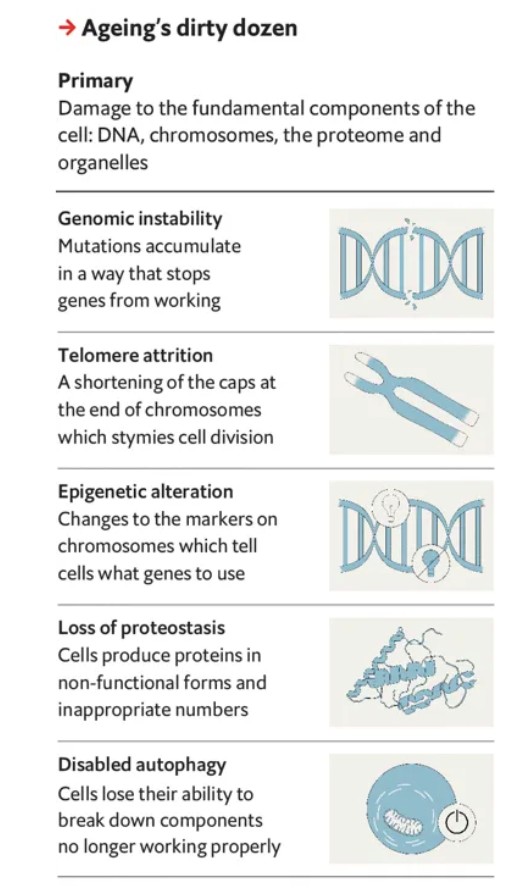 Αντίθετα, θα εξετάσει την πρόοδο που έχει σημειωθεί σε σχέση με καθένα από τα 12 χαρακτηριστικά γνωρίσματα. Η εικόνα που προκύπτει δεν είναι τόσο καθαρή όσο θα επιθυμούσε κανείς. Η βιολογία είναι μια πολύπλοκη, «διαπλεκόμενη» υπόθεση και πολλά από τα χαρακτηριστικά της γήρανσης επικαλύπτονται. Μερικές φορές αυτό σημαίνει ότι μια παρέμβαση μπορεί να κάνει καλό σε περισσότερους από έναν τομείς. Άλλες φορές μπορεί να χρειάζονται συμβιβασμοί. Ωστόσο, ακόμα και η αντιμετώπιση ενός μέρους του καταλόγου θα προσφέρει στους ανθρώπους καλύτερη ζωή. Αν βέβαια κάποιος διαχειριστεί όλα όσα περιλαμβάνονται σε αυτόν, τότε ποιος ξέρει;