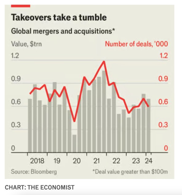 Η παγκόσμια επιβράδυνση των πωλήσεων ηλεκτρικών οχημάτων θα ασκήσει πίεση στις νέες κατασκευές των αυτοκινητοβιομηχανιών (η Ford έχει ήδη μειώσει τα σχέδια για το εργοστάσιο μπαταριών της στο Μίσιγκαν). Καθώς πρόκειται για νέα τεχνολογία, η τεχνητή νοημοσύνη εγείρει νέα ερωτήματα σχετικά με θέματα όπως η ασφάλεια ή τα πνευματικά δικαιώματα, τα οποία μπορεί να μην προσφέρονται για τη λήψη κοινών αποφάσεων. Οι οιονεί συγχωνεύσεις είναι εδώ για να μείνουν. Πολλές μπορεί να αποδειχθούν μόνο οιονεί επιτυχείς.