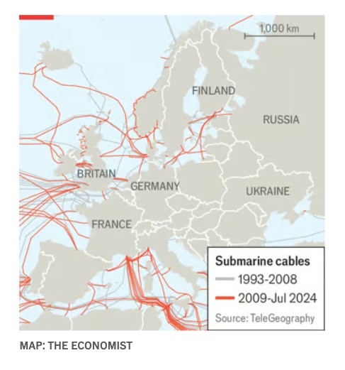 Σε ολόκληρη την Ευρώπη Ρώσοι κατάσκοποι και οι πληρεξούσιοί τους έχουν επιτεθεί σε στόχους που συνδέονται με την Ουκρανία, χακάροντας υπηρεσίες ύδρευσης, βάζοντας φωτιά σε αποθήκες και σχεδιάζοντας να πλήξουν αμερικανικές στρατιωτικές βάσεις στη Γερμανία. Υπάρχει φόβος ότι οι υποβρύχιες επικοινωνίες θα μπορούσαν να παραλύσουν σε μια κρίση ή σε καιρό πολέμου ή να παγιδευτούν για μυστικά σε καιρό ειρήνης. Και καθώς η Αμερική και η Κίνα μάχονται για την επιρροή τους σε ολόκληρη την Ασία, τα υποθαλάσσια καλώδια έχουν γίνει κρίσιμο μέρος του ανταγωνισμού τους.