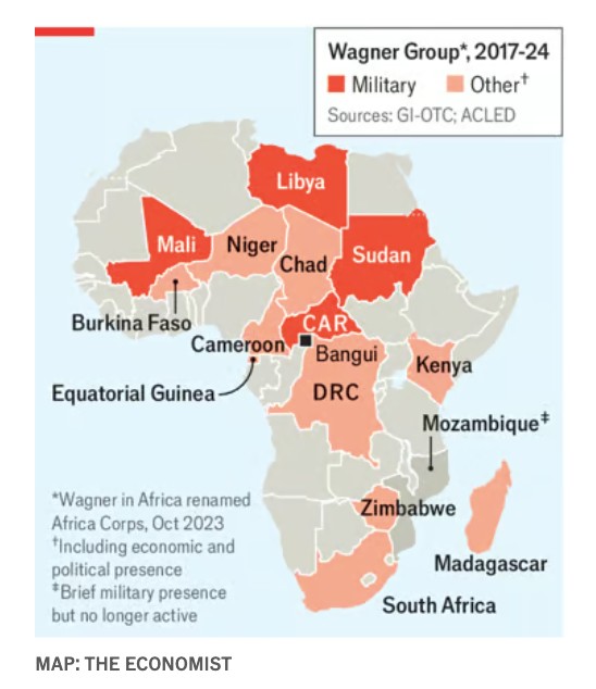 Τα τελευταία χρόνια η Ρωσία για να προωθήσει τα συμφέροντά της στην Αφρική συνδύασε την επίσημη διπλωματία με ένα μείγμα γκανγκστερισμού και αποικιοκρατικών επιχειρήσεων. Οι επιχειρήσεις της Βάγκνερ στην ΚΑΔ χρησίμευσαν ως πρότυπο για το δεύτερο μέρος αυτής της επιχείρησης, η οποία υπήρξε πιο καρποφόρα σε εύθραυστα μέρη. Ο τρόπος με τον οποίο εξελίχθηκε η ομάδα τους τελευταίους μήνες δείχνει πώς αυτή η προσέγγιση άλλαξε από το καλοκαίρι του 2023, όταν ο Yevgeny Prigozhin, ο ιδρυτής ολιγάρχης της Βάγκνερ, σκοτώθηκε λίγες εβδομάδες αφότου οργάνωσε μια αποτυχημένη ανταρσία κατά του κ. Putin. Αν και οι δραστηριότητες της ομάδας έχουν τεθεί υπό τον στενό έλεγχο του ρωσικού κράτους, συνεχίζει να διατηρεί την παρουσία της στην ήπειρο. Ωστόσο, χωρίς μεγάλες αλλαγές στον τρόπο λειτουργίας της, είναι απίθανο να επεκταθεί περαιτέρω.