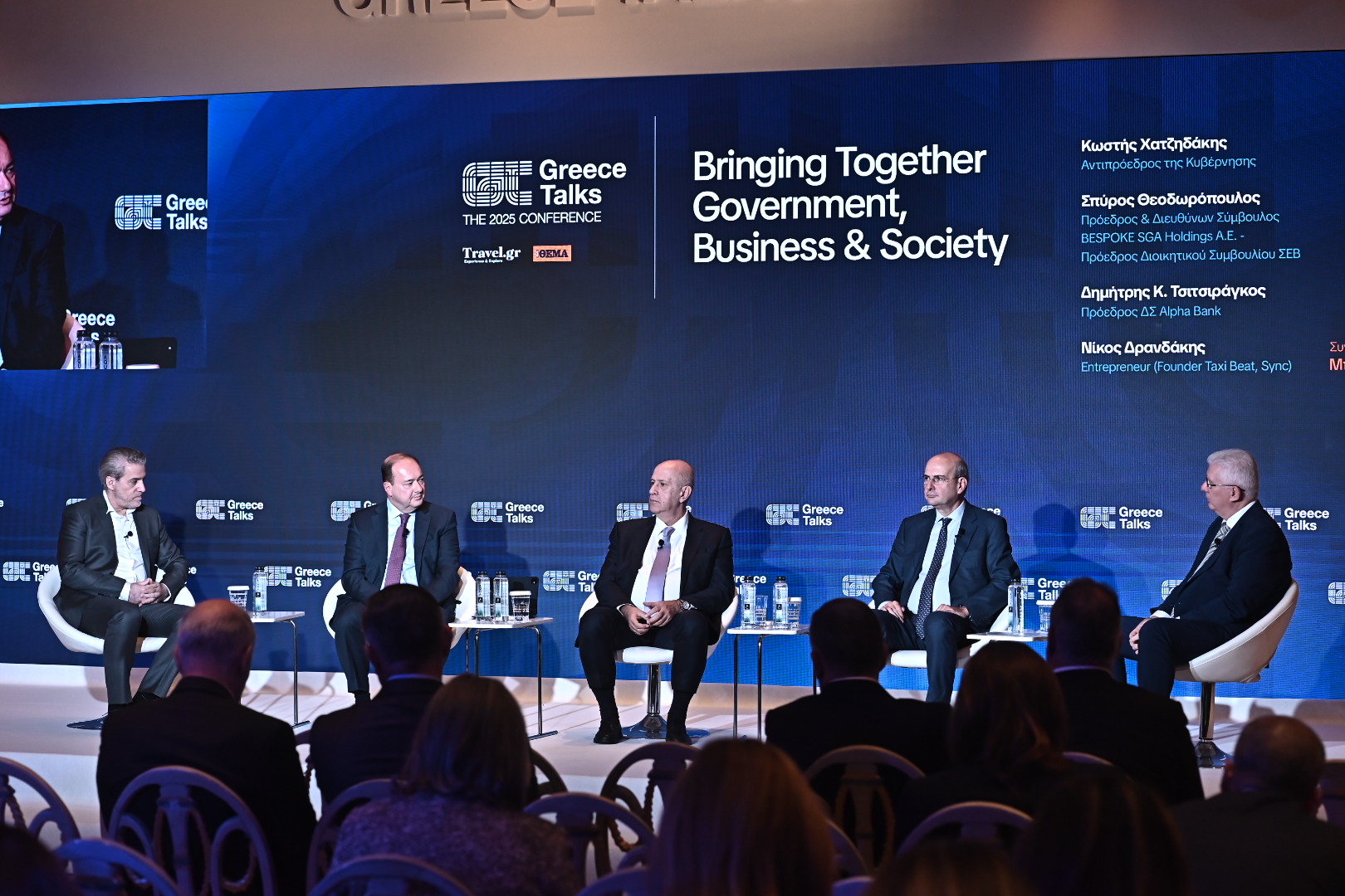 Στον ρόλο του τραπεζικού συστήματος ως καταλύτη συνεργασίας μεταξύ δημόσιου και ιδιωτικού τομέα, στη σημασία της στήριξης των μικρομεσαίων επιχειρήσεων στη νέα εποχή καθώς και στην ανάγκη ενίσχυσης της εμπιστοσύνης στους θεσμούς, αναφέρθηκε ο πρόεδρος του Δ.Σ. της Alpha Bank Δημήτρης Τσιτσιράγκος, στο πλαίσιο του συνεδρίου Greece Talks 2025.