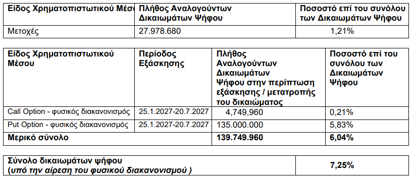 Ειδικότερα τα δικαιώματα ψήφου αναλύονται ως εξής: