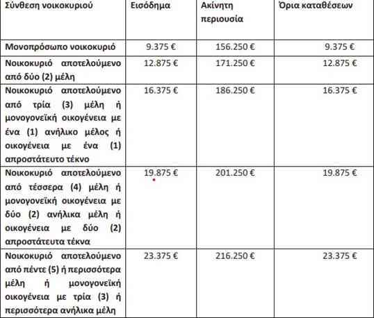 | Σύνθεση νοικοκυριού | Εισόδημα | Ακίνητη περιουσία | Όρια καταθέσεων |