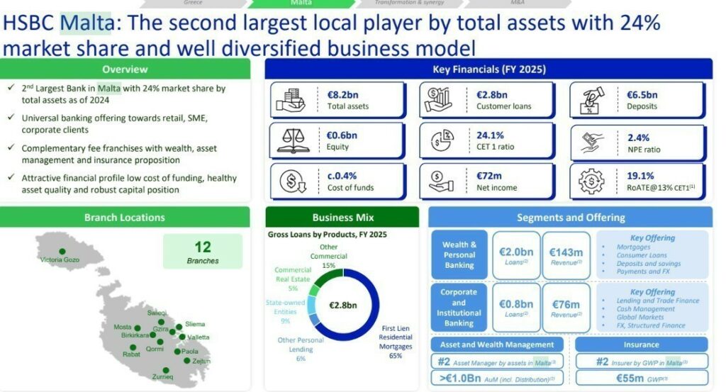 - Είναι η δεύτερη μεγαλύτερη τράπεζα στη Μάλτα, με μερίδιο αγοράς 24% στα συνολικά ενεργητικά το 2024.