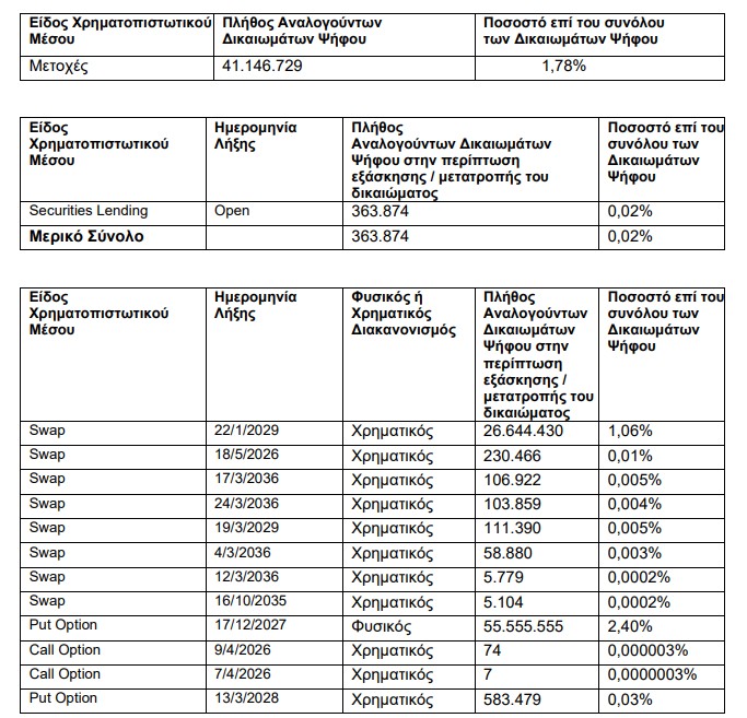 Σημειώνεται ότι το συνολικό ποσό των δικαιωμάτων ψήφου έχει στρογγυλοποιηθεί σε 2 δεκαδικά ψηφία, ως εκ τούτου υφίσταται πιθανότητα σφάλματος στρογγυλοποίησης.