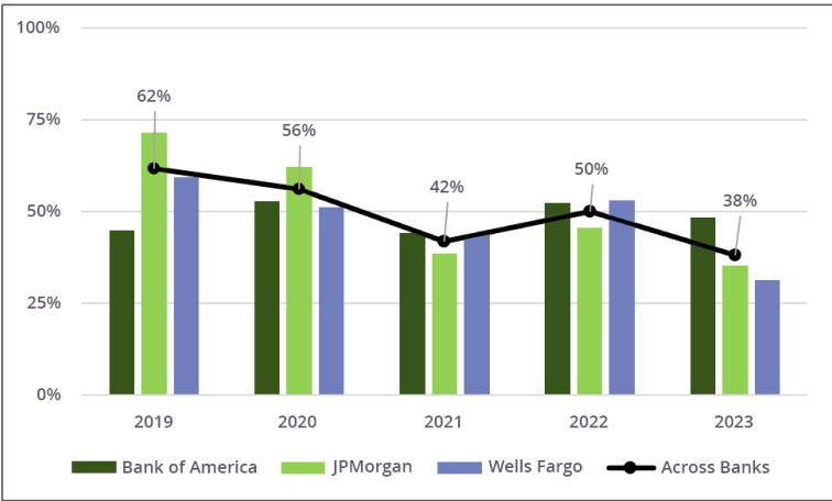 Συνολικά οι JPMorgan, Wells Fargo και Bank of America απέρριψαν αιτήματα συνολικής αξίας 560 εκατ. δολαρίων το διάστημα 2021-2023.